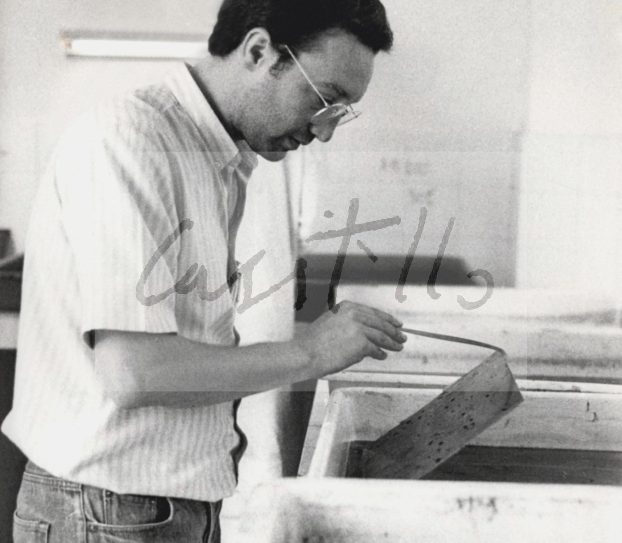 Volviendo al proyecto de El Limbo de las Cosas iniciado el año anterior, Ricardo Casstillo nos presenta esta sugestiva serie en papel, cuyo título remite directamente a la tradición del desnudo en la historia del arte: El pintor y su modelo.