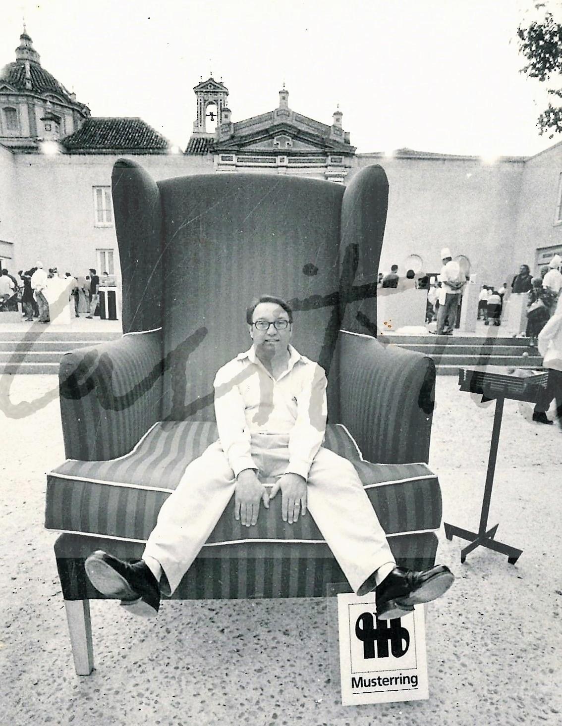 De izquierda a derecha: Ricardo Casstillo, Joaquín Sáenz, José Luis Mauri, Carmen Laffón, Cortijo, José Barragán. Félix de Cárdenas y Félix Gómez entre otros pintores, en la sede de Caja San Fernando de Sevilla.