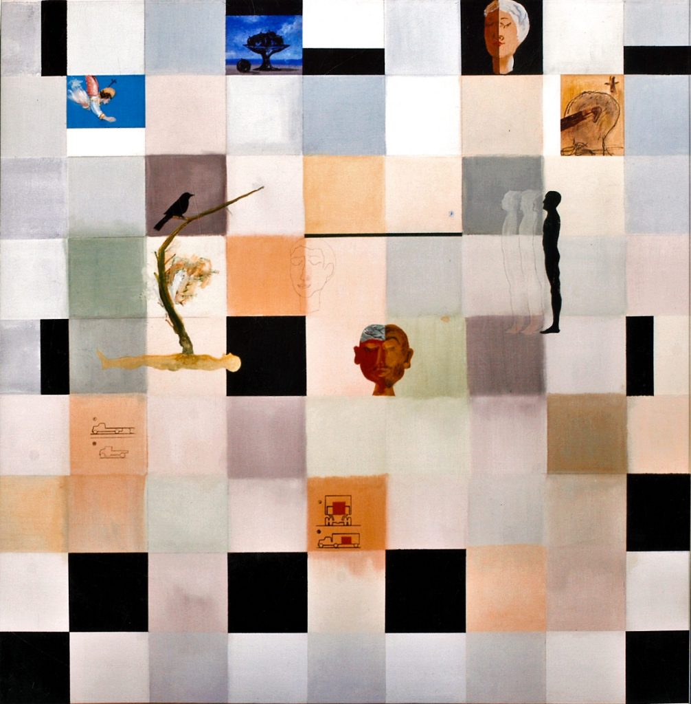 R. Casstillo, El Inquilino elemento II, acrílico, óleo y fotografía sobre lienzo, 90 x 90 cm año 2002