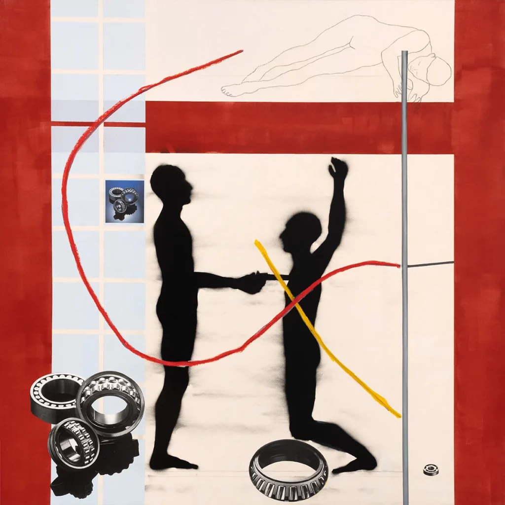 La diferencia está en que Casstillo añade un gesto poético (el saltador con pértiga) y una crítica a la maquinaria social (los rodamientos industriales), extendiendo el discurso goyesco hacia nuestro siglo donde el arte no es solo contemplación, sino también un gesto de resistencia y memoria.