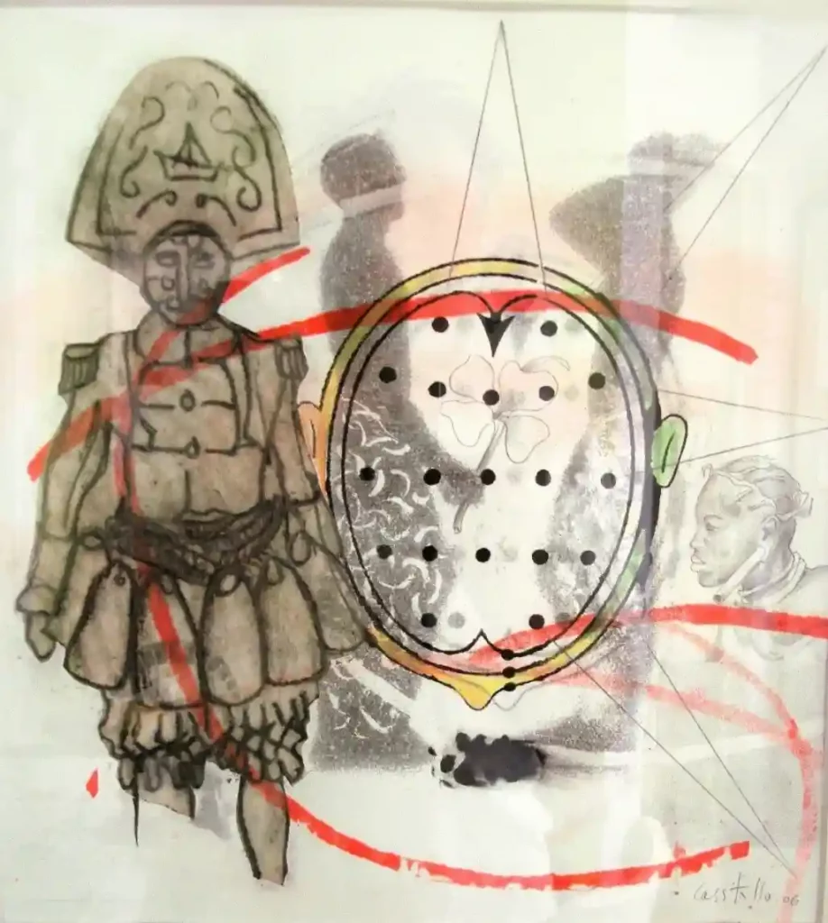 En ambos casos, la máscara anula la identidad individual para dar paso a una figura que encarna autoridad, transgresión y continuidad cultural. En Antropometrías, Casstillo no las utiliza como formas exóticas o folclóricas, sino como signos de una antropología compartida, donde el arte reactiva un saber ancestral inscrito en el cuerpo y el gesto.
