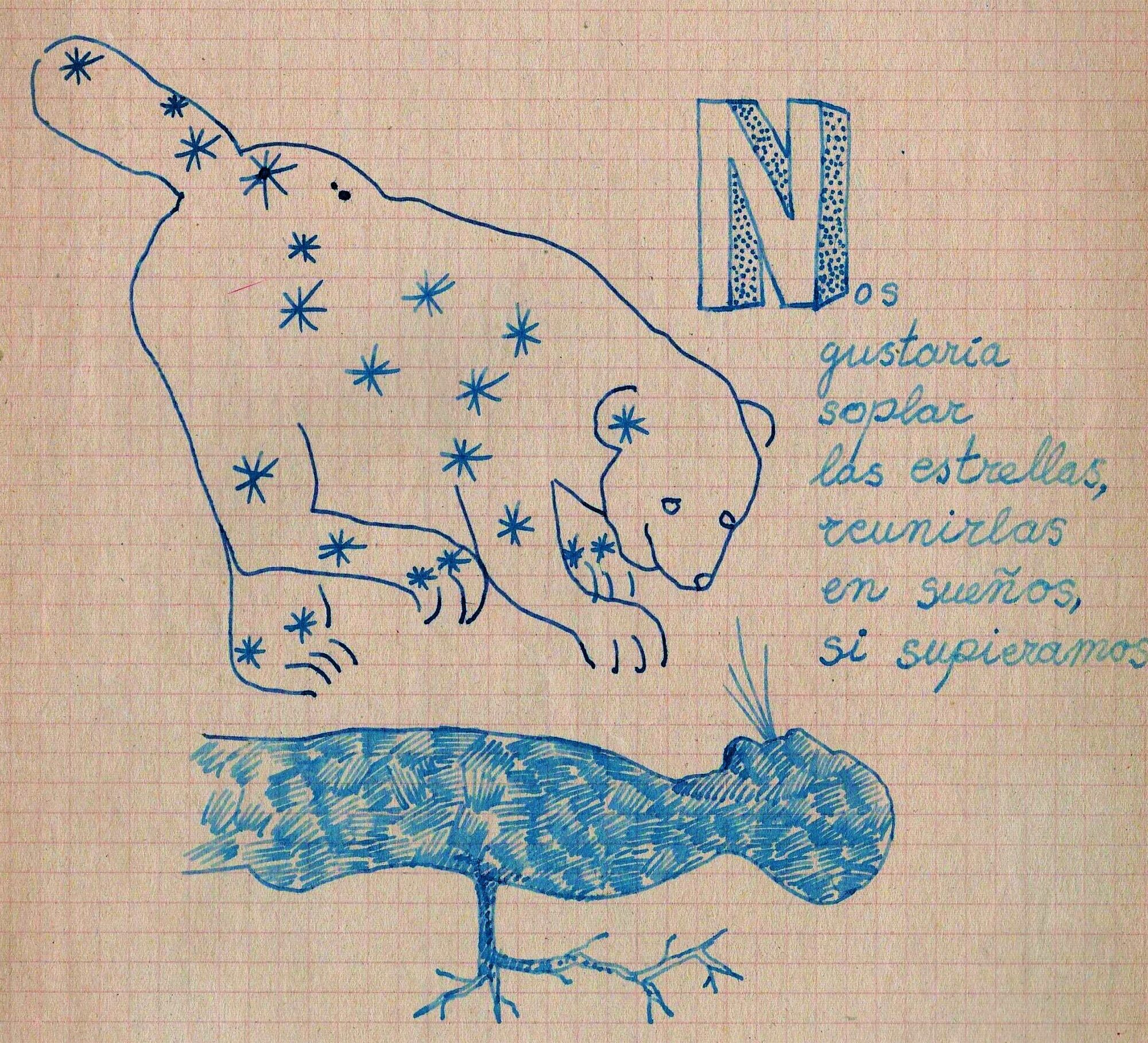 1994 Las Constelaciones dibujos poemáticos Virgo Los Lebreles portada web La Osa Mayor Hidra Draco Cráter 1989 Otros Desiertos 1990 Offset sobre esmeril, 30 x